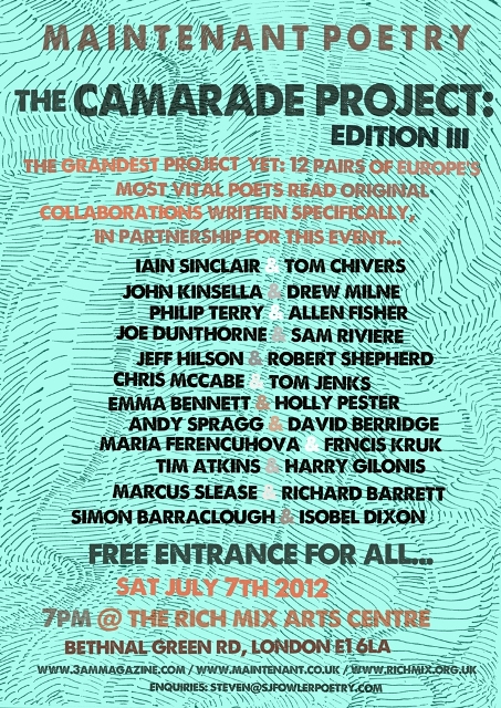 come on out if you around. Some fun collaborations happenin . . it’s The Camarade Project Edition 3. I am reading some collaborative work with Richard Barrett. Quite a line up!!!